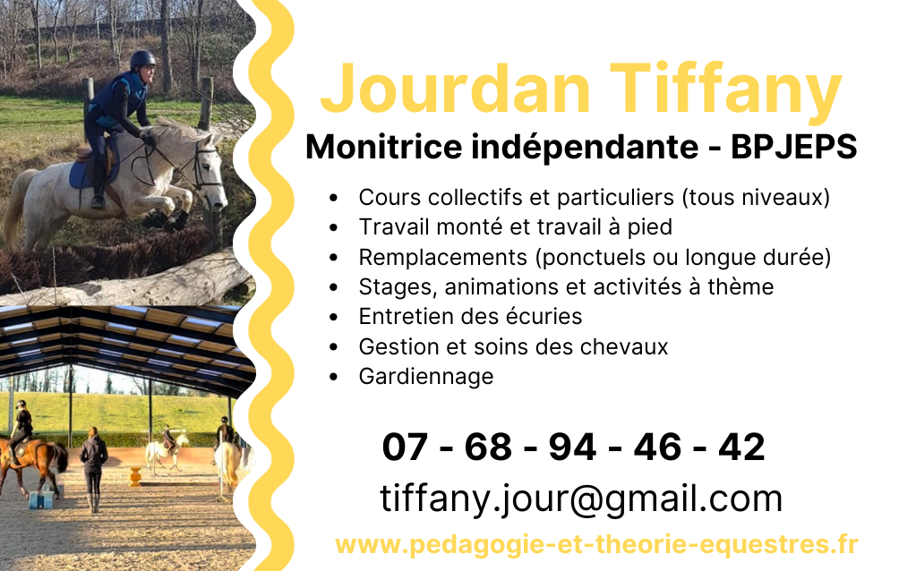 Dans un souci pédagogique et de sécurité, je privilégie les demandes récurrentes afin de pourvoir apprendre à connaître et créer un lien avec les cavaliers et la cavalerie de l'écurie.